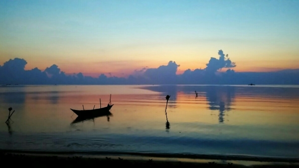 Bicara soal kepulauan, pasti akan selalu ada obrolan tentang pesisir, juga pantai. Pulau Bunguran Besar, di mana ibukota kabupaten terletak, tentu saja dikelilingi pantai dan tebing. Pantai level tengah kota, tepat di depan penginapan saya tinggal saja seperti ini, di kala matahari terbit. Iya, saya tinggal di penginapan (di Ranai) yang sepelemparan batu saja jaraknya dari pantai.